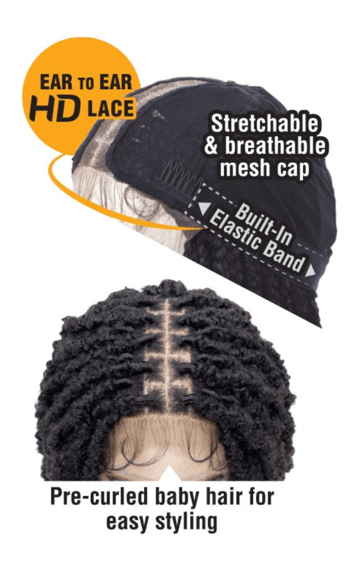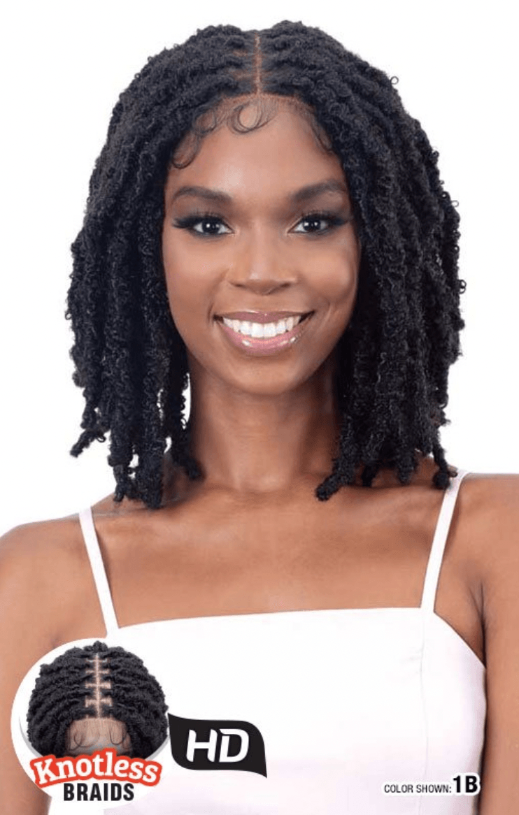 Freetress gevlochten pruik met kanten voorkant – Knooploze Butterfly Loc-pruik is een HD-kanteenheid met free part met een diep 5 “breed kantgedeelte dat perfect plat ligt zonder volume! Knotless Butterfly Loc is gemaakt met dezelfde knooploze vlechtmethode door stylisten!