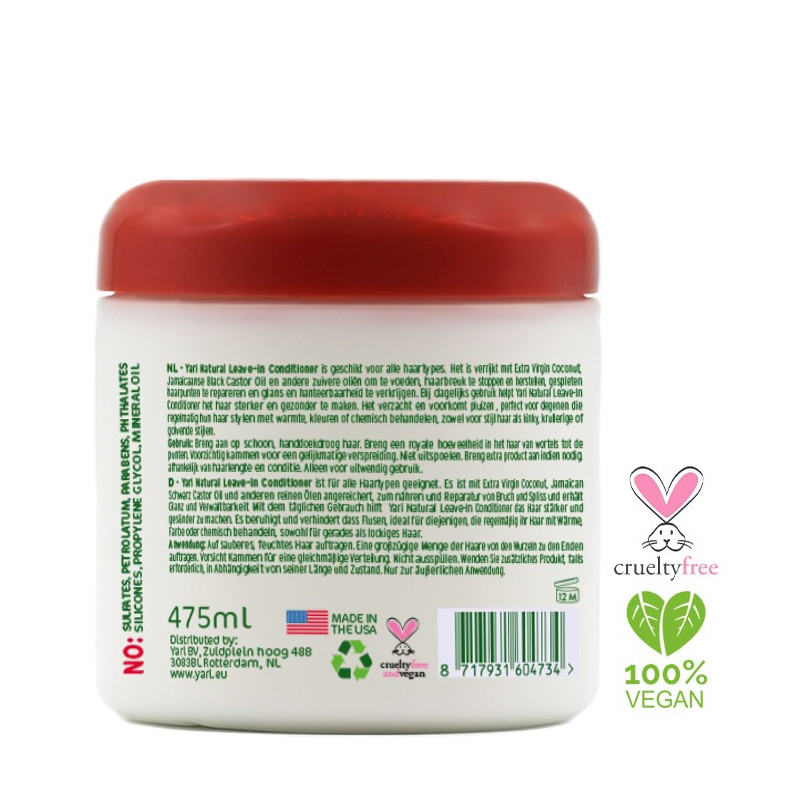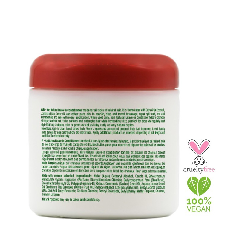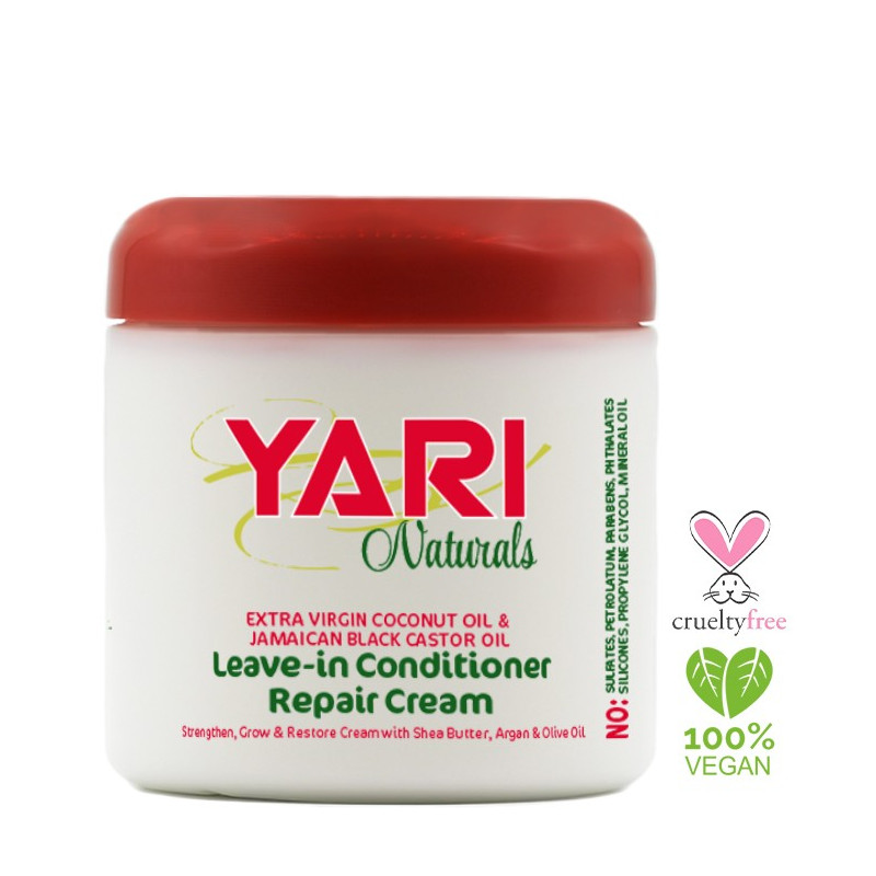 Yari Naturals Leave in repair Conditioner, is geschikt voor alle haartypes. Het is verrijkt met Extra Virgin oil, Jamaicaanse Black Castor Oil en andere zuivere oliën om het haar te voeden, te herstellen, haarbeuk en gespleten haarpunten te voorkomen. Bij dagelijkse gebruik helpt Yari Naturals Leave in repair Conditioner het haar te versterken en gezonder te maken. het verzacht en voorkomt pluizen en is geschikt voor chemisch behandeld, geverfd, beschadigd haar.