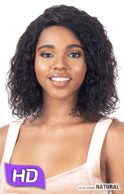 Naked Premium 100% human hair wig – Miley features a bob length, wet and curly style with a ear to ear HD lace and a deep 5″ right side lace part.