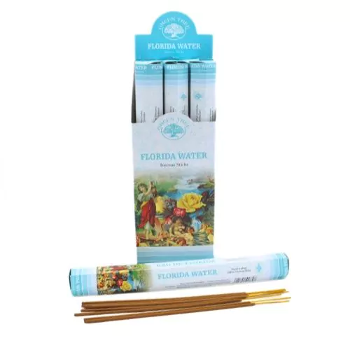 Green Tree Florida Water Wierookstokjes komen in een doos van 20 stokjes en bieden een frisse, bloemige citrusgeur met hints van lavendel. Ideaal voor ontspanning, meditatie of een rustige sfeer in huis of op kantoor. Gebruik in een hittebestendige houder in goed geventileerde ruimtes en doof de stokjes na gebruik.
